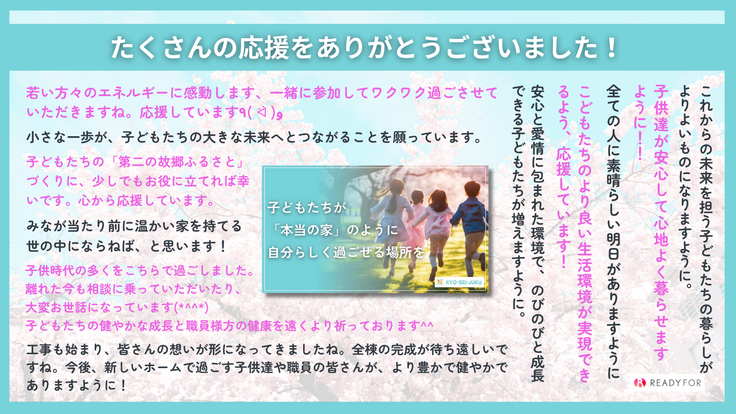 クラファンに挑戦中、どれだけ皆さんからの応援コメントに励まされたことでしょう。