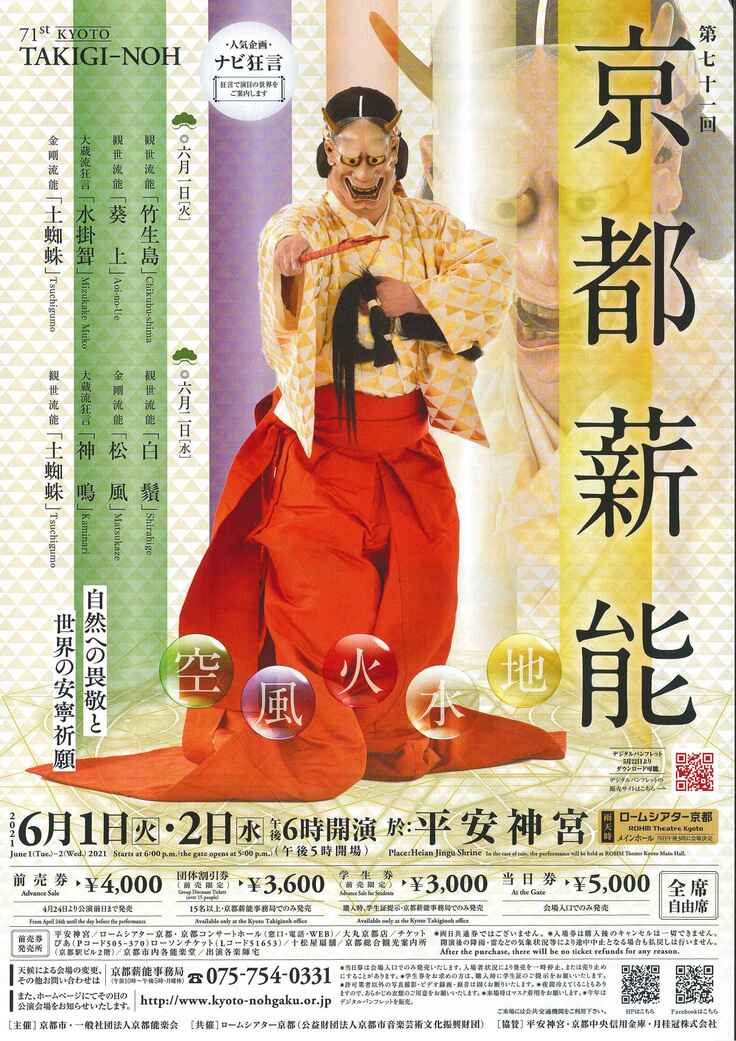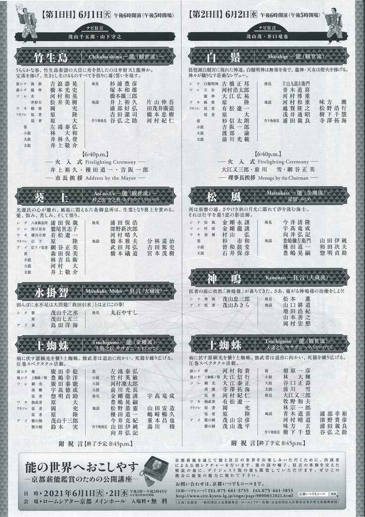 今年の薪能のテーマは地水火風空、宇宙を構成する5元素をそれぞれ番組内容と