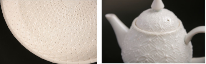 粘土をペースト状にといてデコレーションケーキのように絞り出して描画する『いっちん』という技法を用いて、見て楽しい、使って心地よい器づくりを心がけている。