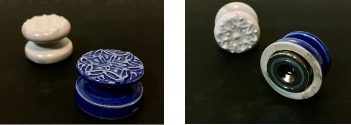 このマグネットフックには、高島氏が得意とする「いっちん」技法により、日本の伝統的な図柄「七宝柄」を施しました。 今後、厄除を意味する「麻の葉柄」や「うろこ柄」を施したマスクフックを製造する予定です。