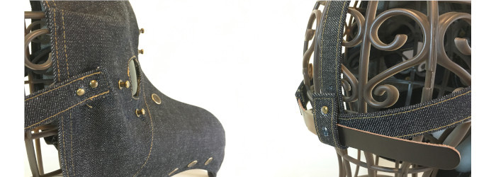 現代ではスチームパンクの象徴とも言えるアイテムであり、私たちが製作を挑戦するに十分な要素が詰まっていました。 アーミーグッズに詳しいファッションデザイナーにサンプルを作ってもらい、試行錯誤の結果純国産デニムのベストマスクが試作品が仕上がりました。