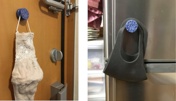 玄関ドアや冷蔵庫に貼り付けたマスクフック