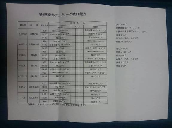 この支援プロジェクトは10月に行われる「JABAびわこ杯争奪大会」に関するものですが、我がDBグラッズが秋に参加する公式戦に「京都クラブリーグ戦」という京都府の大会がございます。