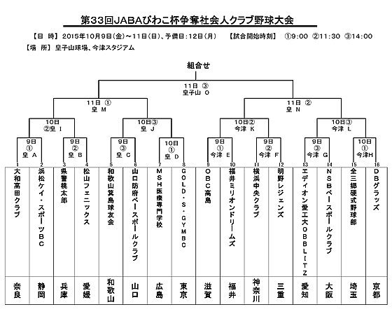 第33回JABAびわこ杯争奪社会人クラブ野球大会の組合せ決まる!