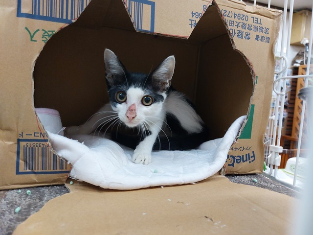 この黒白の小さな男の子には、これから新しい名前と、新しい家族が必要です。