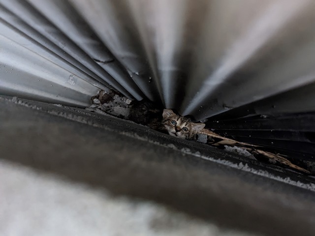 「子猫がブロック塀とトタンのすき間に落ちて、鳴き声だけが聞こえるんです。手も網も入らないんです。」