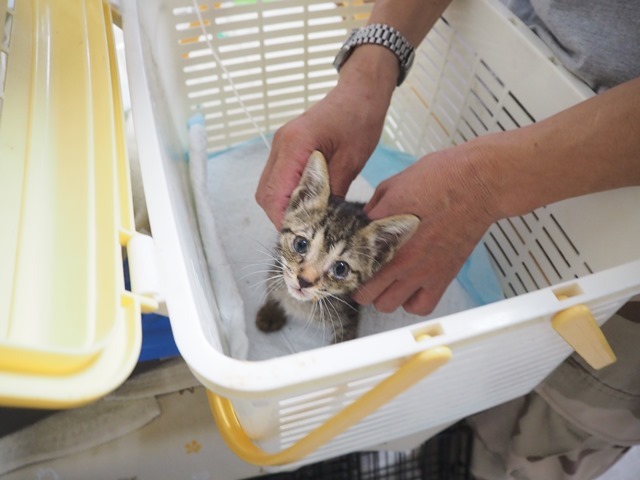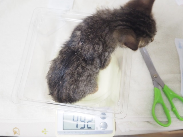 助け出されたのは、体重492グラムのキジトラの女の子。