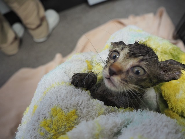 その直後、空からは大粒の雨が降り始めました。もし救出が少しでも遅れていたら、冷たい雨でこの小さな体は持たなかったかもしれません。まさに紙一重のタイミングでの救出でした。
