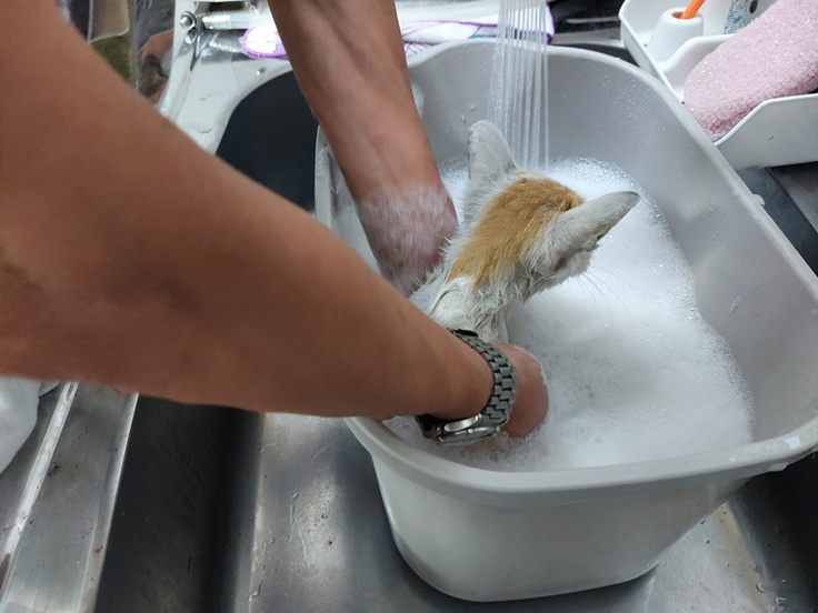 翌28日には体調が安定し、シャンプーを実施。体中から大量のノミの死骸とフンが落ちました。