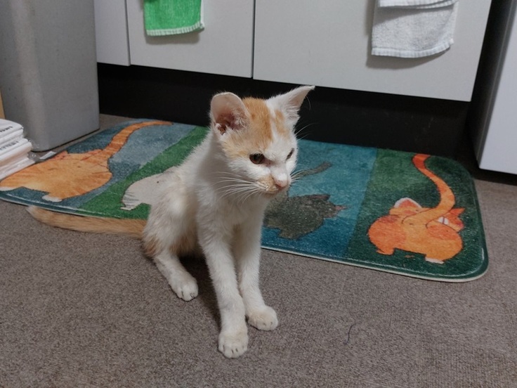 7月27日、24日に保護されたプロリンちゃんが自分でごはんを食べ、あくびもできるまで回復しました。