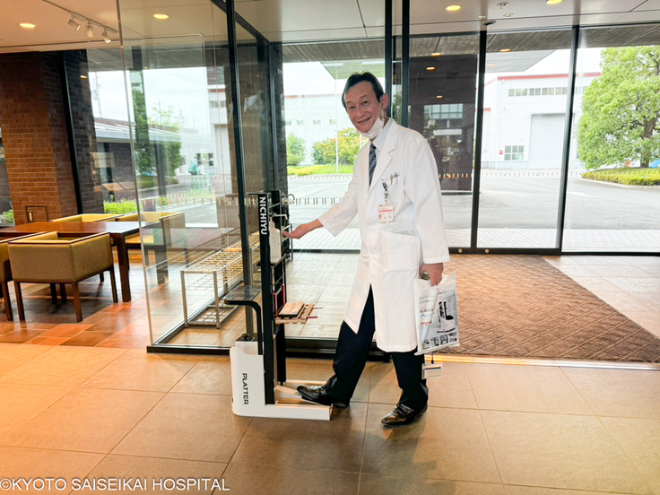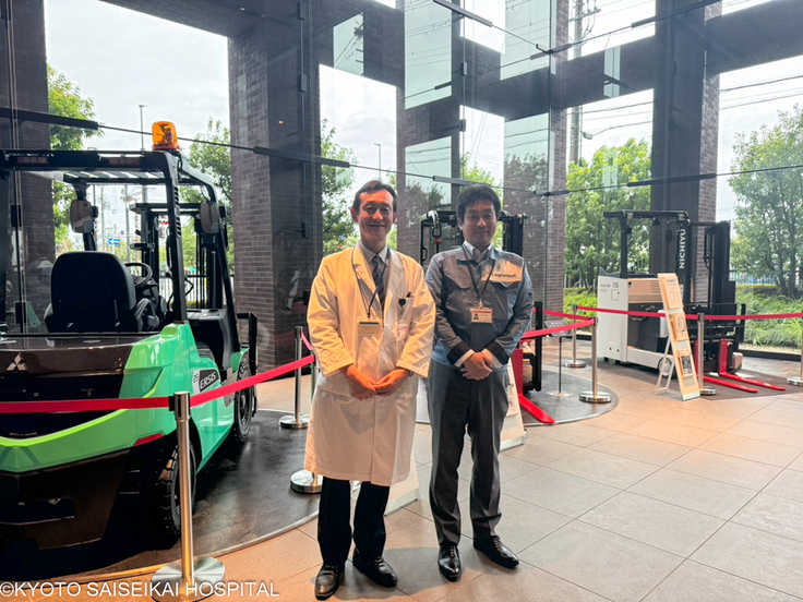 今日は、JR長岡京駅前にある三菱ロジスネクスト株式会社さまに訪問して、ロボット支援手術とクラファンについて藤副院長からお話しました。