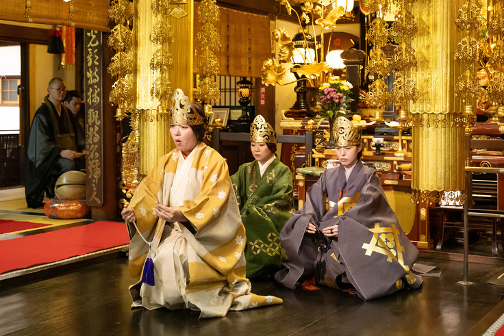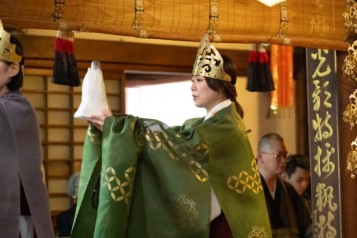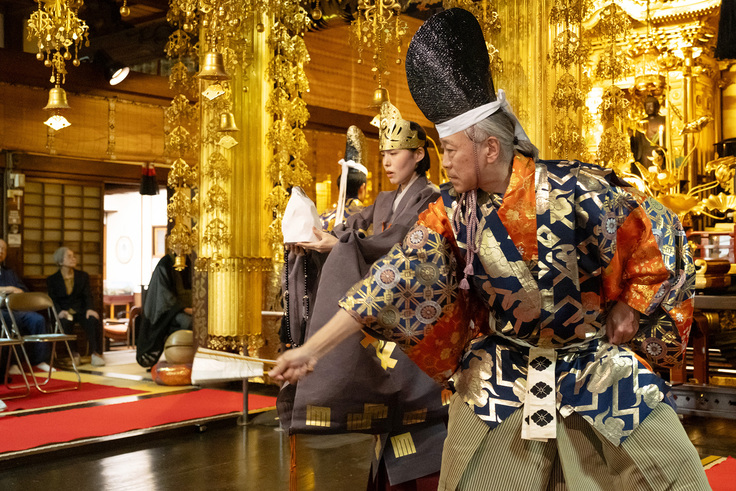 6月8日、秀次公と御一族430回忌記念奉納芸能・第二弾、安田登さんとノボルーザによる創作舞台『殺生塚』を開催いたしました。安田登さんは下掛宝⽣流ワキ⽅能楽師。そしてノボルーザは安田さんの率いる一座ですが、謡、雅楽、舞踏、電子音楽家、造形作家などその都度いろいろな人が集まって一つの作品を作り上げる不思議な集団です。今回秀次公の側室たちの三条河原での処刑と、瑞泉寺に伝わる彼女たちの辞世の句をテーマにした舞台を創作し上演してくださいました。※タイトルの「殺生塚」については以前の記事をご参照ください。