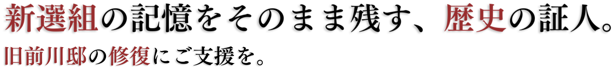 どうか、この歴史遺産を未来へつなぐプロジェクトの一員となっていただき、ともに新選組隊士のドラマが生まれた旧前川邸を守っていただけませんか?
