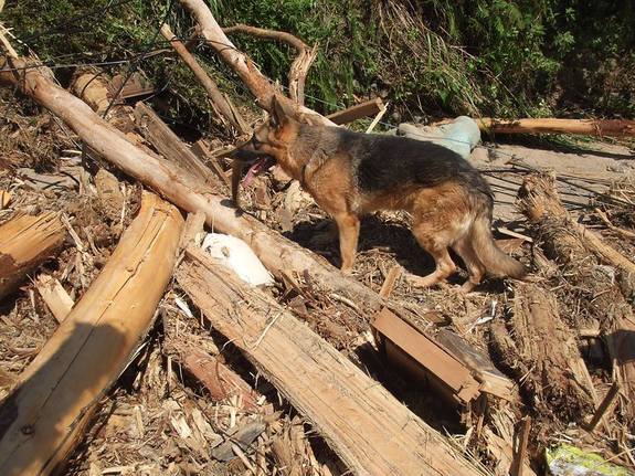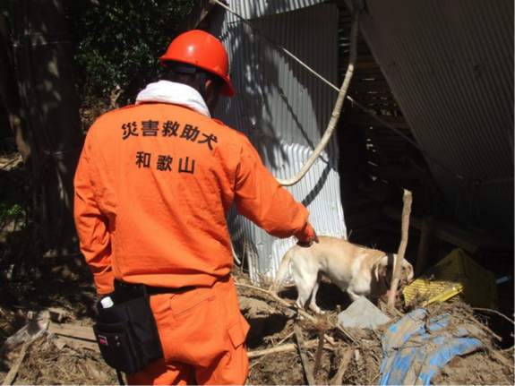 また、2011年に起こった東日本大震災では、福島県南相馬市に赴き、すべてが津波で流されなくなってしまったその場での行方不明者の捜索活動にあたりました。さらに同年の台風12号紀伊半島大水害では、山からの土石流によって家も車も流されてしまった中で、述べ10日間、8頭の災害救助犬と7人のハンドラーが7地区での捜索活動を行いました。