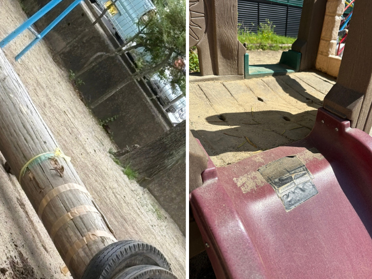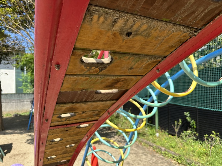 特に大型総合遊具は30年以上前の遊具のため劣化が見られ、他の固定遊具も経年劣化だけでなく、近年点検したところ、安全性で気になるものもありました。