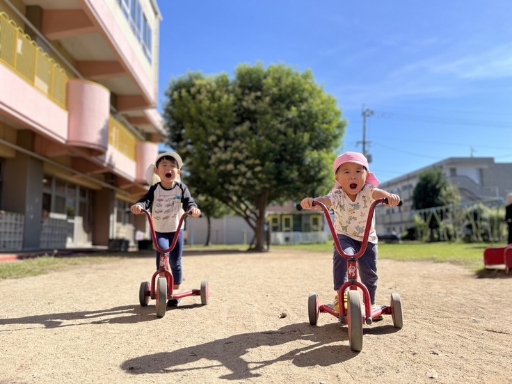 運営する2つの幼稚園の園庭には大型遊具や砂場、ブランコ、季節を感じられる樹木や草花などがあり、子どもたちの大好きな遊び場となっています。