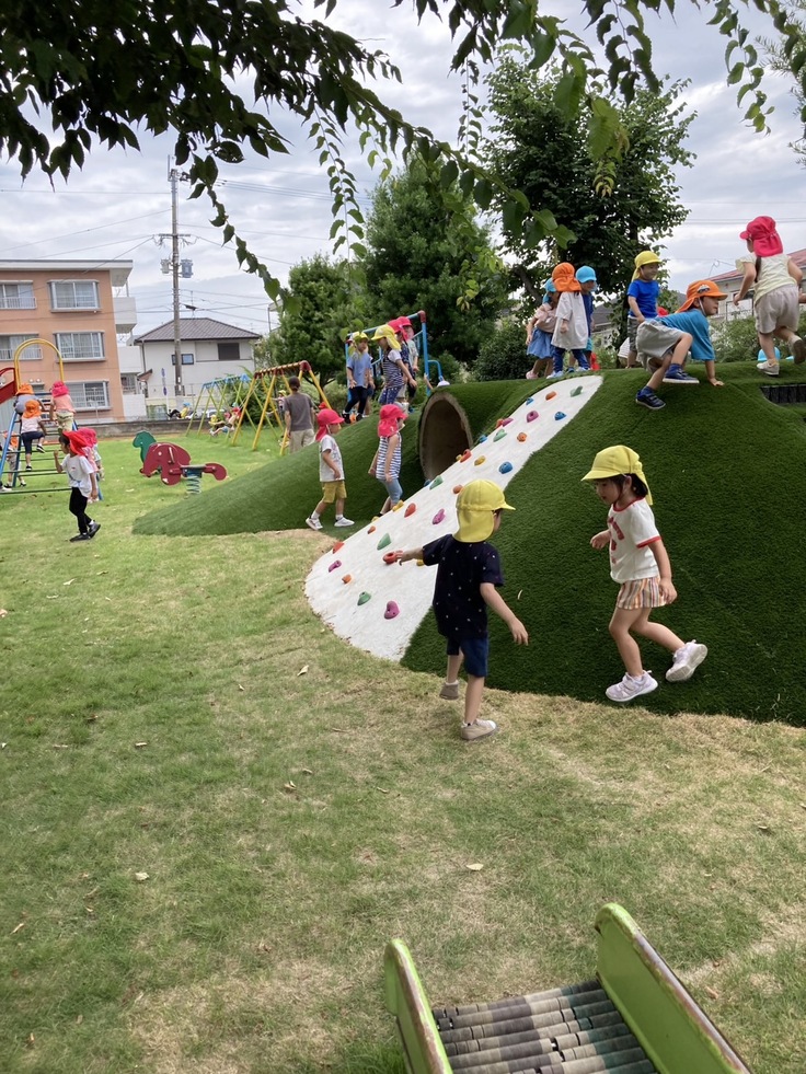 写真は出来上がったばかりの園庭で遊んでいる子どもたちの様子です☆
