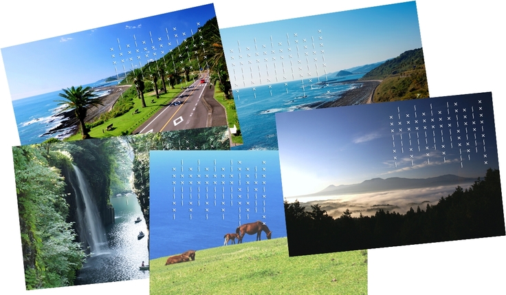 宮崎の美しい自然風景に詩の一節を書き添えた、他では手に入らない素敵な絵葉書です。インテリアとしてもお使いいただけます。10種類の中から選んだ5枚をセットにしてお贈り致します。