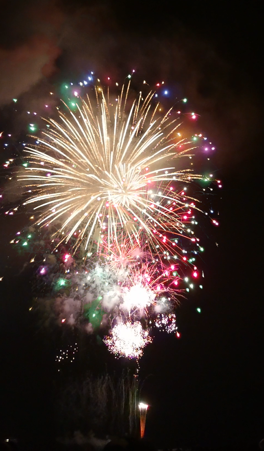 そして同年7月26日、海の大花火大会は予定通り開催されました。名物である「尺玉100発一斉打ち」が2回連続打ち上げとなるなど盛大な花火大会となり、見事に復活を遂げました。柏崎ファンクラブのスターマインは大型花火の12番目、19:52頃に打ち上げられ、花火大会復活の一翼を担うことができました。支援してくださった皆様をはじめ、プロジェクトに携わったすべての方々のおかげです。