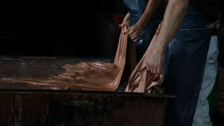 豊かな自然環境や、京都・大阪といった当時の政治・経済の中心地から近い立地のため、私達の身近には、いつも皮革産業がありました。現在でも国内外のトップメゾンやブランドへ高品質の皮革を提供する製革工場が同地には多く点在し、その品質や高い技術力は世界中から称賛を受けています。