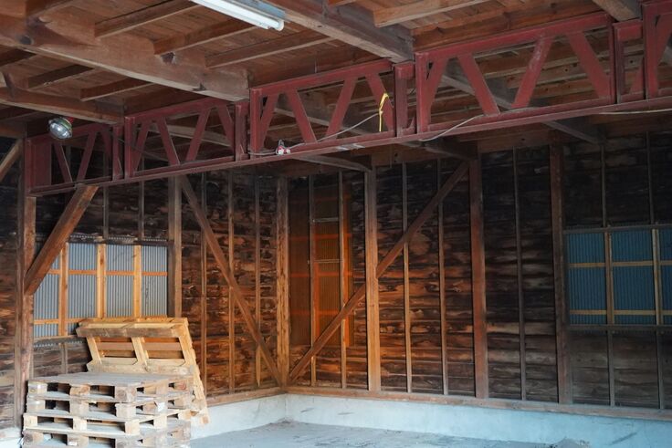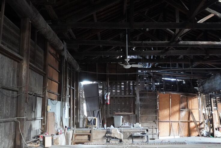 写真の空き工場などをアーティストの作業場、住居にリフォームします。