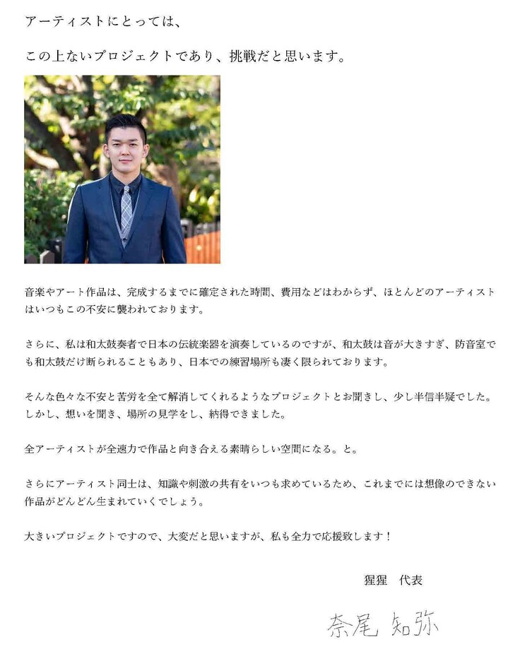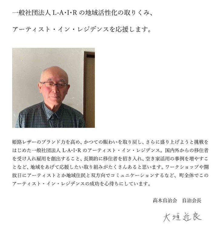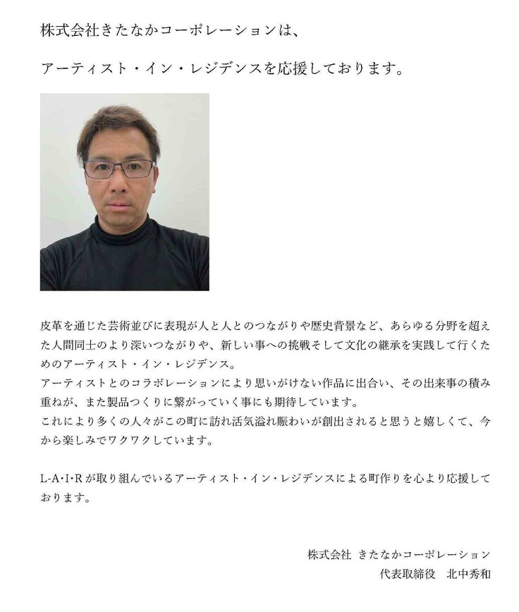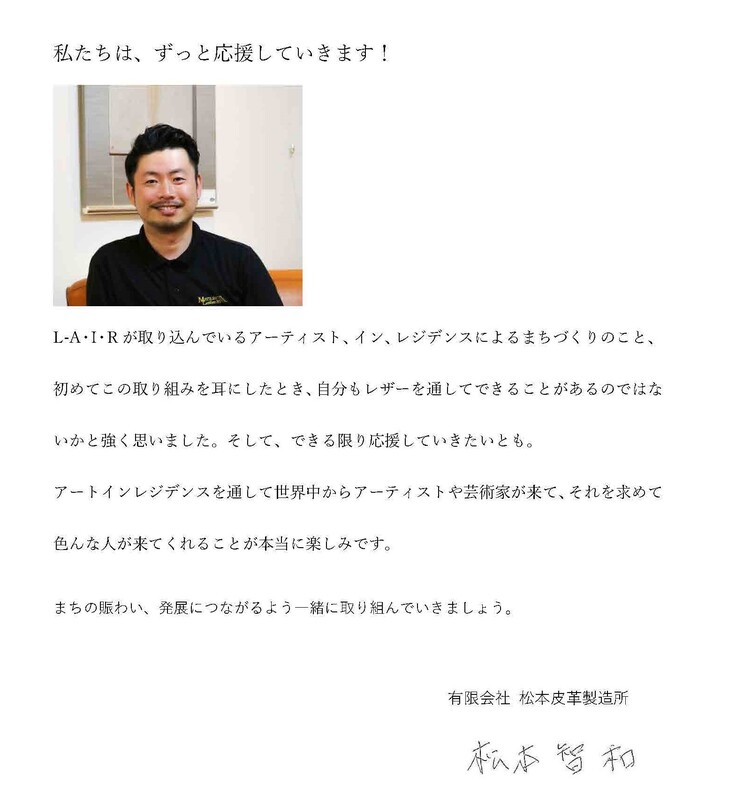 そして、この街に育まれた誇り高い先人の歴史と想いがアーティスト・イン・レジデンスを通じて多くの方々へ知っていただけるよう貢献し、取り組んで参りたいと思います。