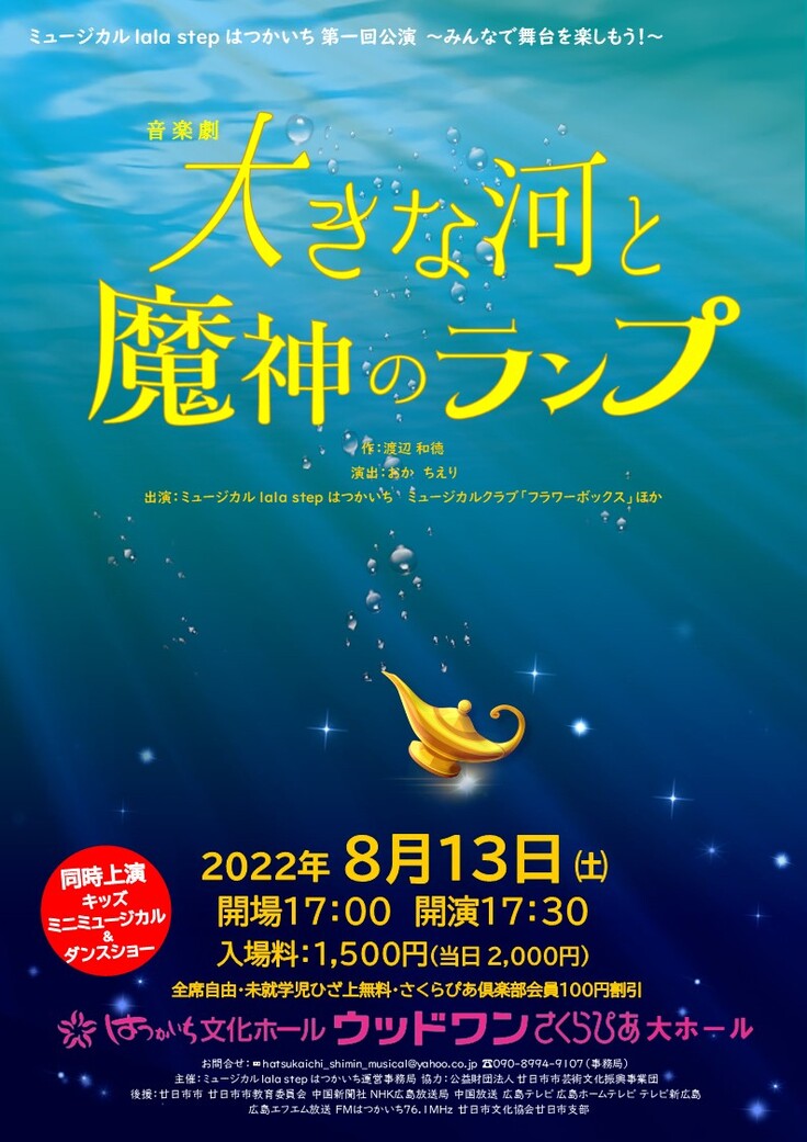 また、地域の子どもたちをはじめ、どんな年代の方でも舞台に立てるチャンスを、私たち「ミュージカル lala step はつかいち」はこれからも作り続け、地域の文化活動機会の創造へ寄与いたします。