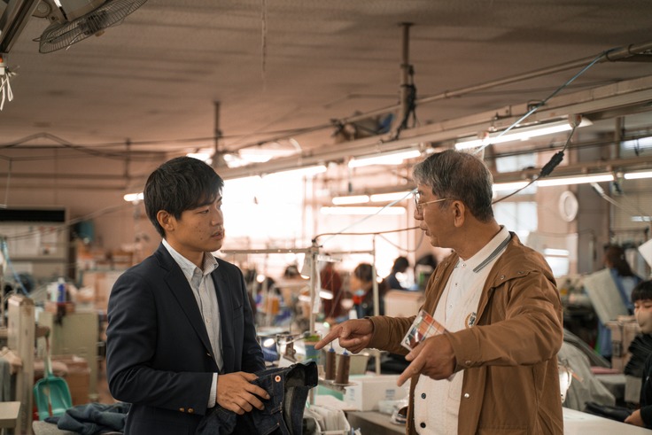 ジーンズ産地・倉敷市児島と、デニム(生地)産地・広島県福山市の工場との協業で、第一弾製品の「循環するジーンズ」が誕生しました。