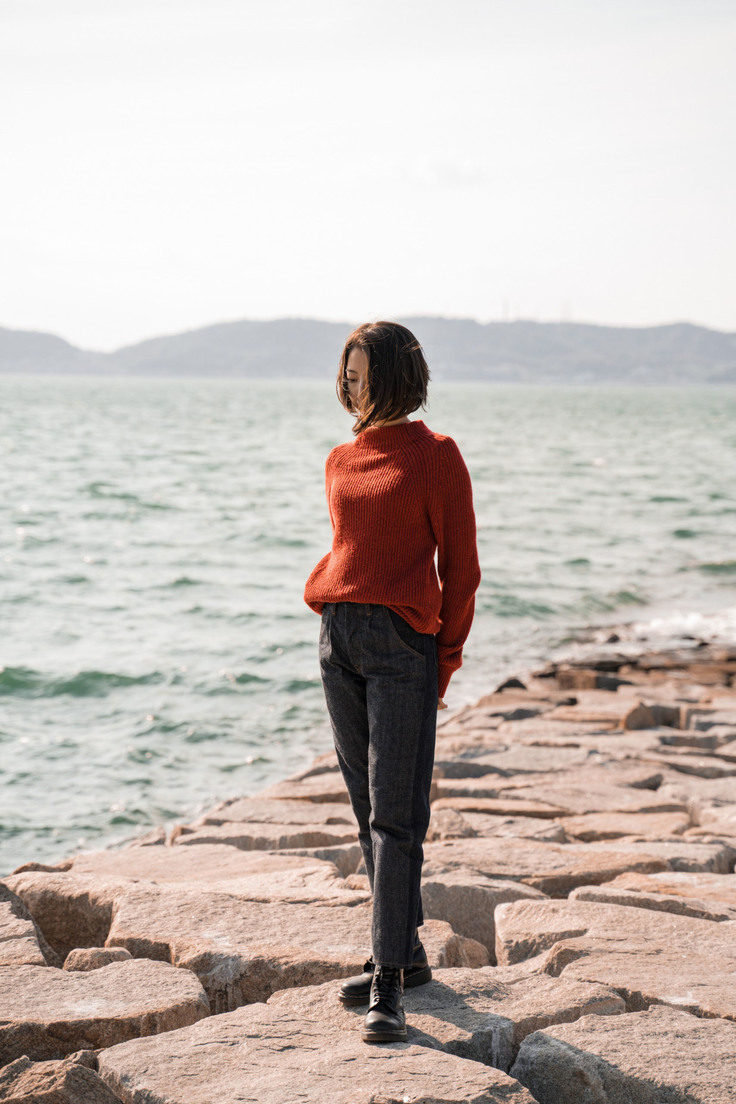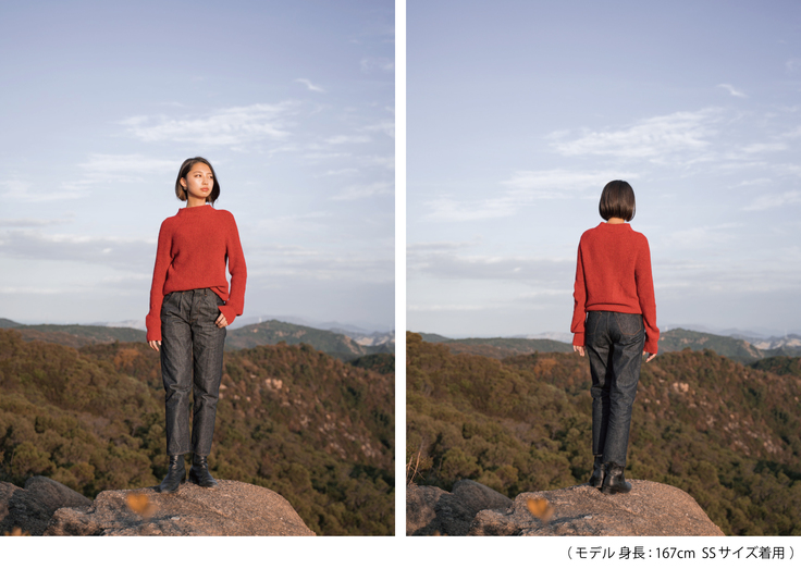 腰回り・太もも部分はルーズなのに、裾にかけて絞りがかかっており、ストレスの少ない穿き心地と、すっきりとした印象を両立しました。
