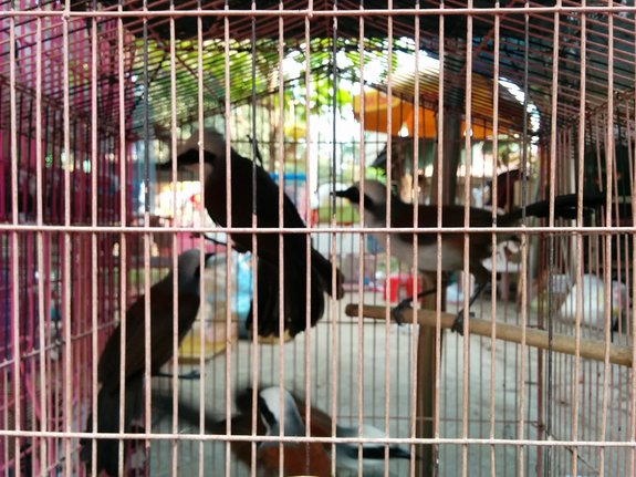 町のペットショップでは、野鳥を捕獲して売りに来る村人たちを、見かけることがあります。