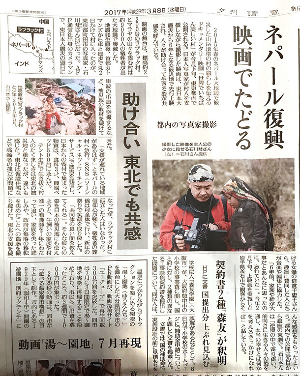 石川の活動と映画の紹介が読売新聞全国版に掲載されました。