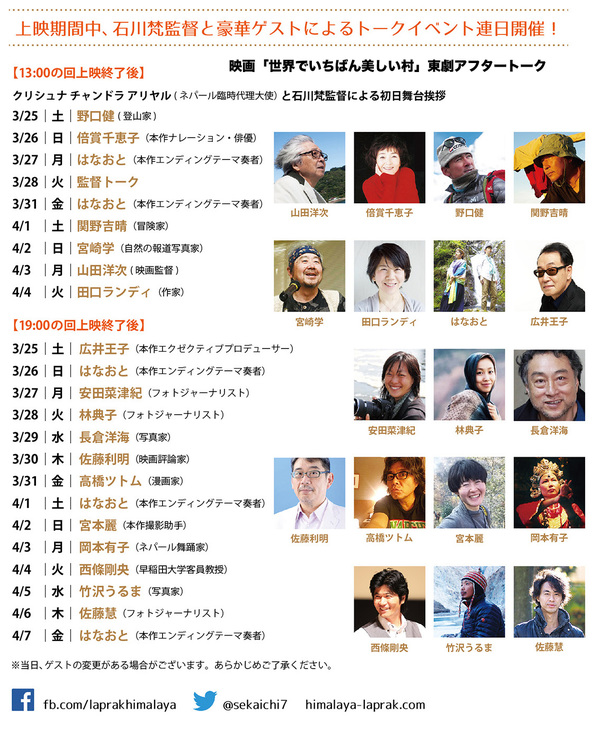 初日は石川梵と登山家の野口健氏、エンドロールを歌ったミュージシャンのはなおと、そしてネパール大使も参加しての舞台挨拶が行われます。