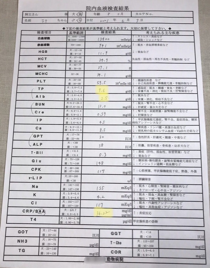 血液検査の結果、FIP(猫伝染性腹膜炎)の可能性が高いこと、今治療できる可能性があるのは海外の未承認薬のみであることが告げられました。