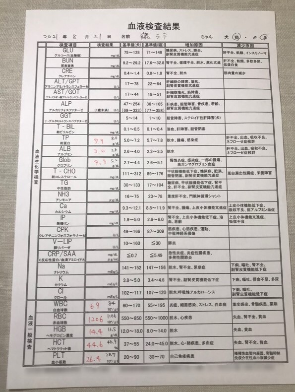 そして気になる検査の結果ですが、取り急ぎ病院での簡易的な血液検査の結果
