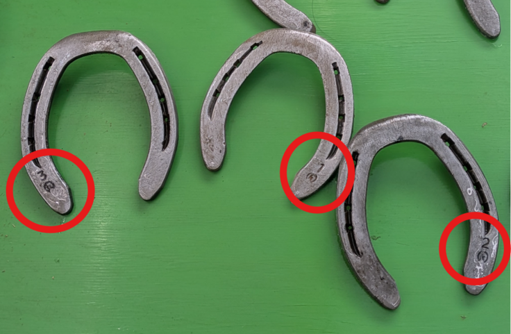 摩耗が激しい物はセネッティ・ワンダーヴィーヴァの蹄鉄で、傷が少ない物はコンテナジュニアの蹄鉄です。
