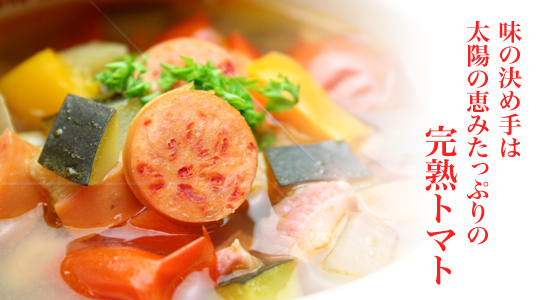 もぎたての風味を“ギュッ”と濃縮!トマトの甘みと酸味、スパイスの香りも楽しめるさっぱりとした味に仕上げました。