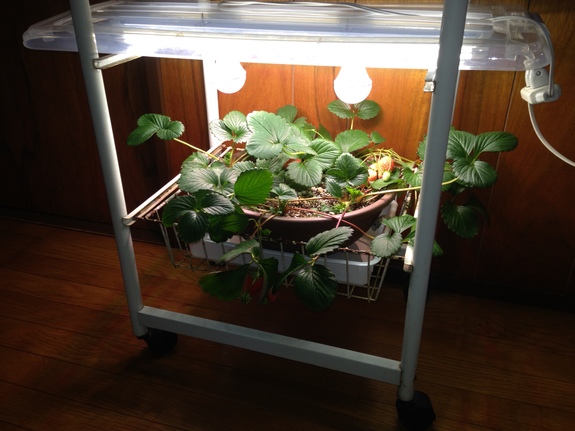 <実験C:イチゴのプランター栽培 ※LED使用>