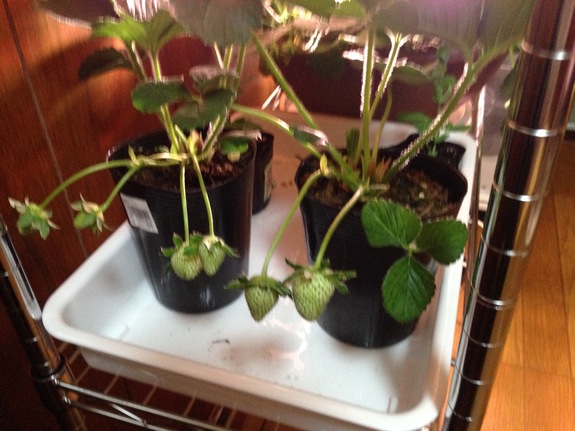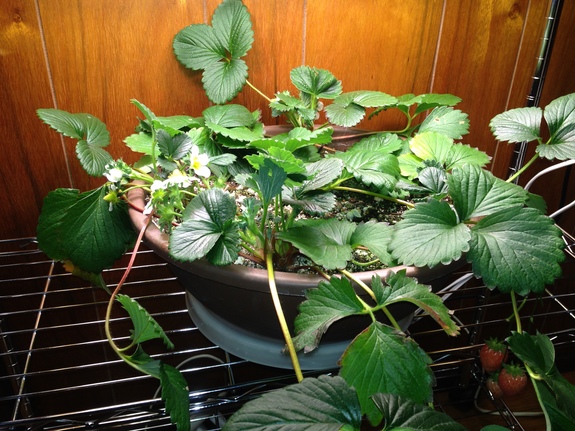 この時点で、赤色の光成分は約半分になっています。プランターに植えられたイチゴの苗には、頂いた時点でいくつか実がなっていました。