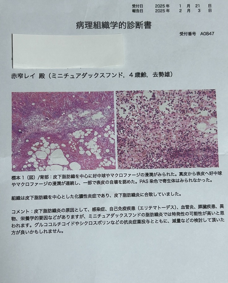 炎症を起こす《脂肪織炎》だろう、との診断。