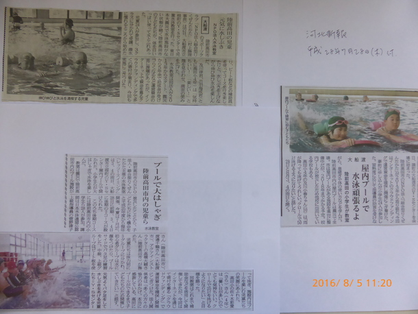 このプロジェクト開催中、紙面に取り上げ応援してくださった新聞社の方々が「水泳教室」開催時には、子供たちの様子を取材してくださいました。