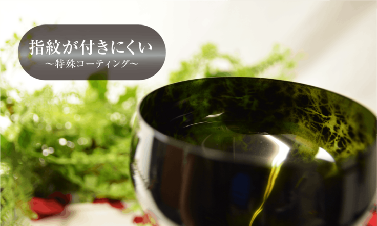 何層にも特殊コーティングを重ねているため、通常のガラス製品と比べ指紋が付きにくいです。