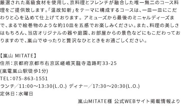 ▼嵐山MITATEのPR動画 ※嵐山MITATEより許諾を得て動画を掲載しています。