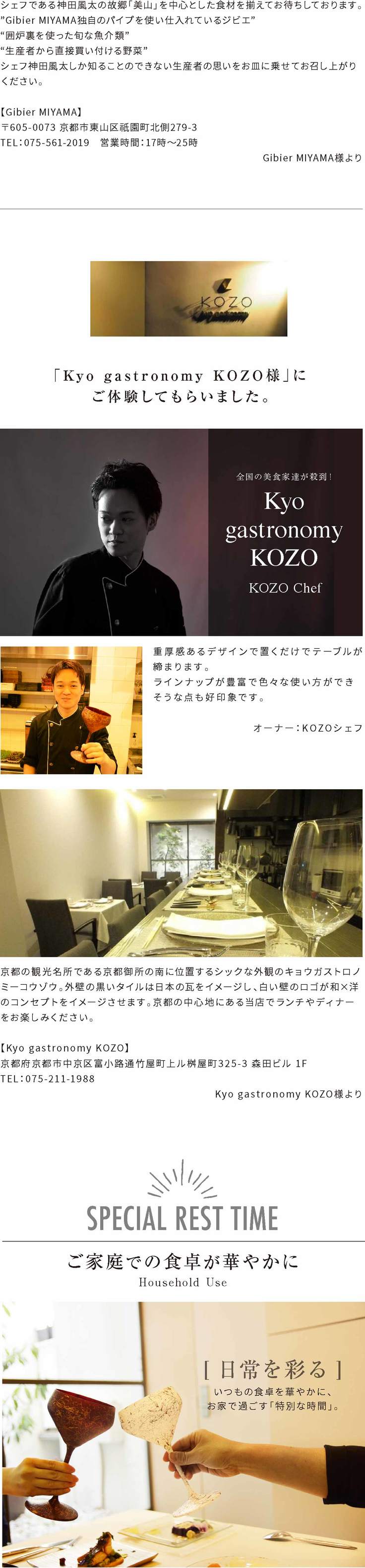 「POUR LE CHEF」という商標でミシュラン店などの高級飲食店やホテル、旅館などに業務用の高品質な食器としてご利用いただいております。また、お客様に毎月コースがわりに様々な種類の食器を使って欲しいという思いから、テーブルウェアのサブスクサービス「サラカリ」を運営しております。