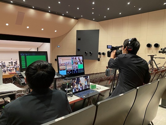 リハーサルに合わせ、カメラワークの確認。