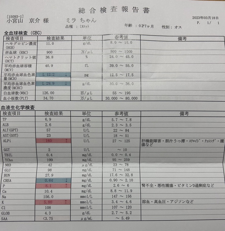 特に下げ止まりしていた、炎症を示す値「SAA」も基準値まで落ち着きました。