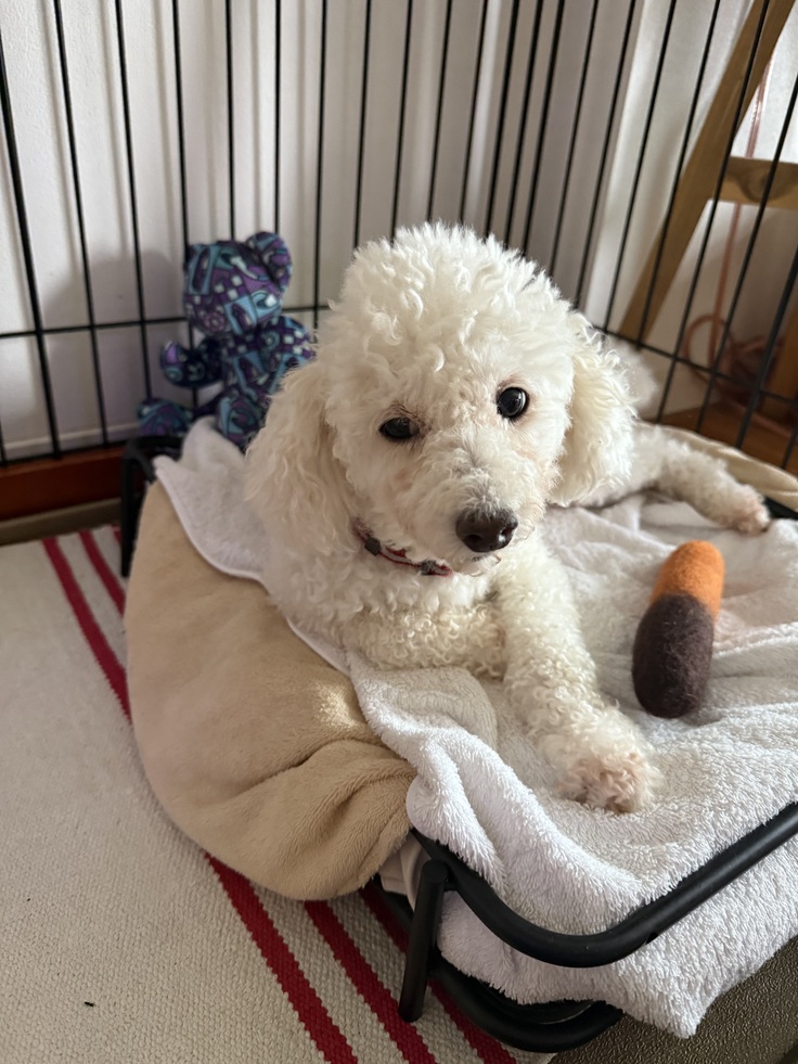 お留守番もずっとケージの中(入り口は開けてあります)で過ごしているそうです