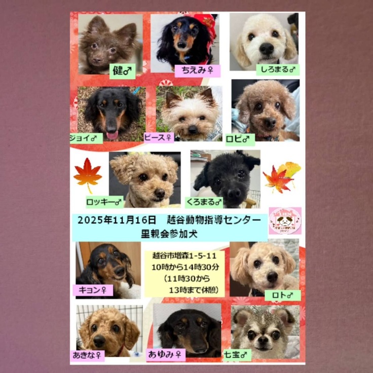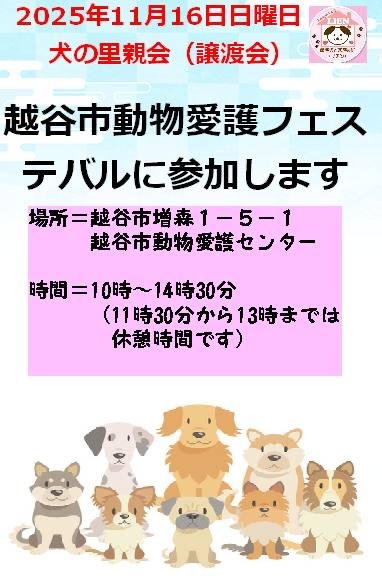 11/16埼玉県越谷市動物管理センターにて里親会開催です