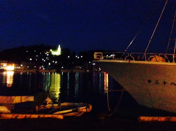 (光っているのは教会!海面に映る光が、私の気仙沼の好きな風景の1つです*)
