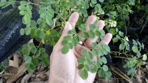 栄養補給に食べるのはこのモリンガの木の葉になります。