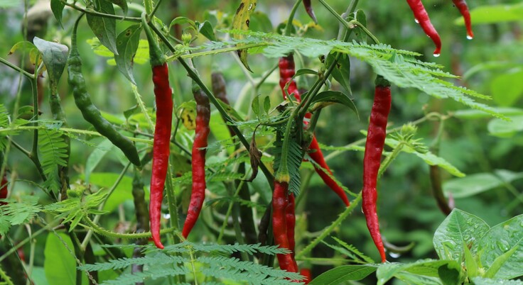 赤く実った唐辛子